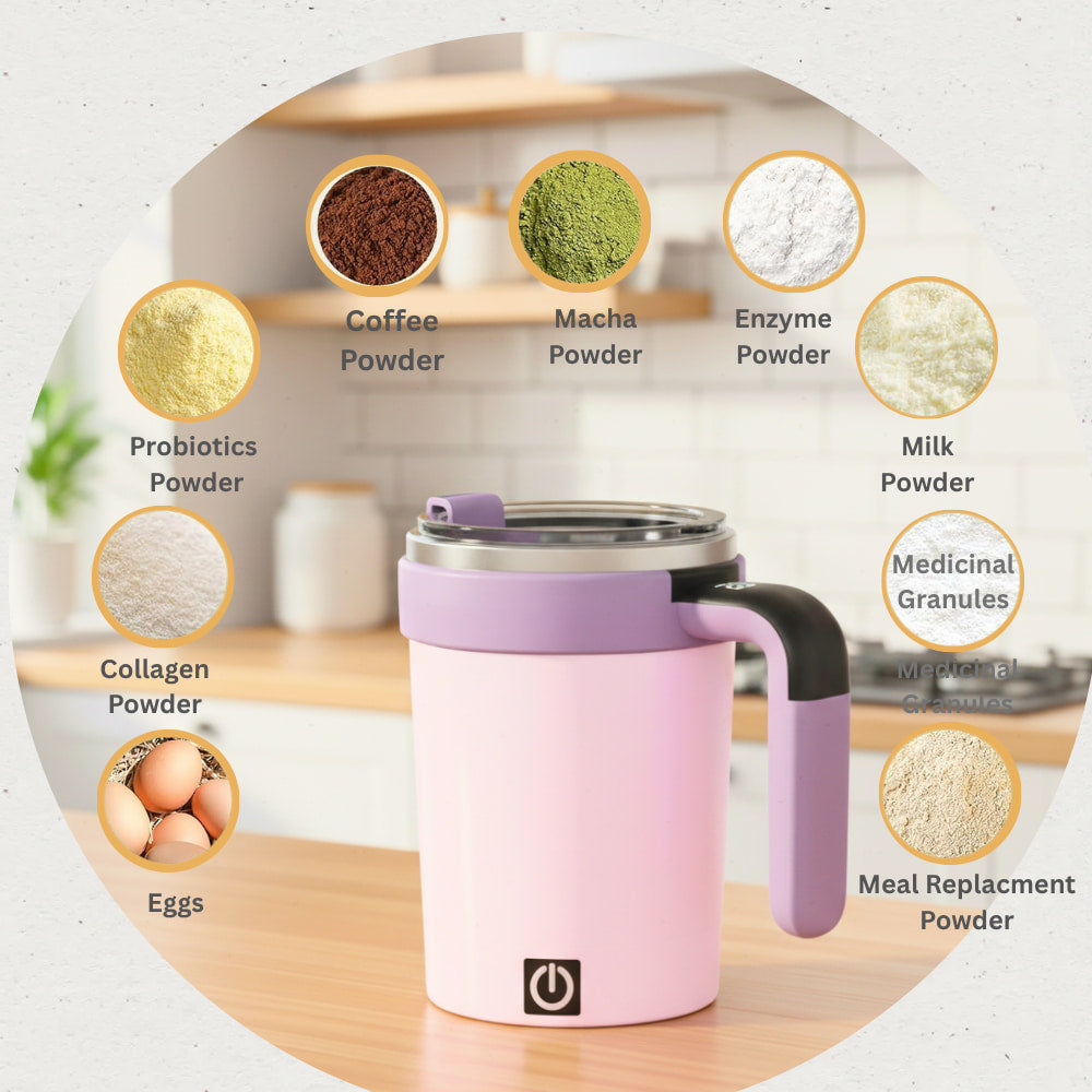 Choose your vibe—purple, green, or classic white. The BlendMate™ Mug not only stirs your drink to perfection but also matches your personal style.